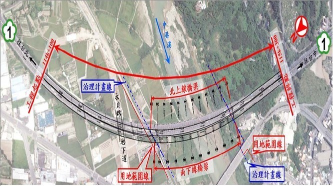 於114k+326.65±及114k+572.17±兩處農路穿越箱涵配合路面延長﹔正興路(北橫公路)地下道上方配合新南下線路堤範圍增設箱涵。