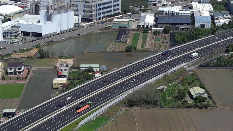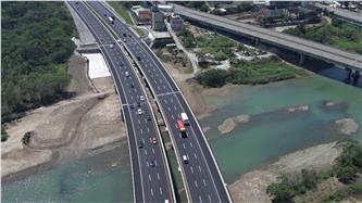 本工程於橋梁北側新設中央分隔帶集水井及管涵等排水設施, 沿新南下線車道下邊坡新設排水明溝、集水井及排水管涵;於橋梁南側北上線及新南下線右側邊坡新設擋土牆共構排水明溝、滯洪沉砂池及管涵等設施,中央分隔帶新設沉砂池及管涵排水設施。